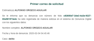 - En el correo de las 05:40 am, ya existiendo denuncia ante las autoridades con numero publicado en otro sitio, se inventa que ir a las autoridades es «DENUNCIA FALSA» y un delito. Para empezar no puede ser delito ir a tribunales porque está estipulado en la constitución articulo 17, y denuncia falsa no es un delito existente en Código penal Federal o Código Civil de La ciudad de México. Hace un razonamiento circular que la denuncia hecha a las 04:45 am es prueba de sus amenazas de horas antes.